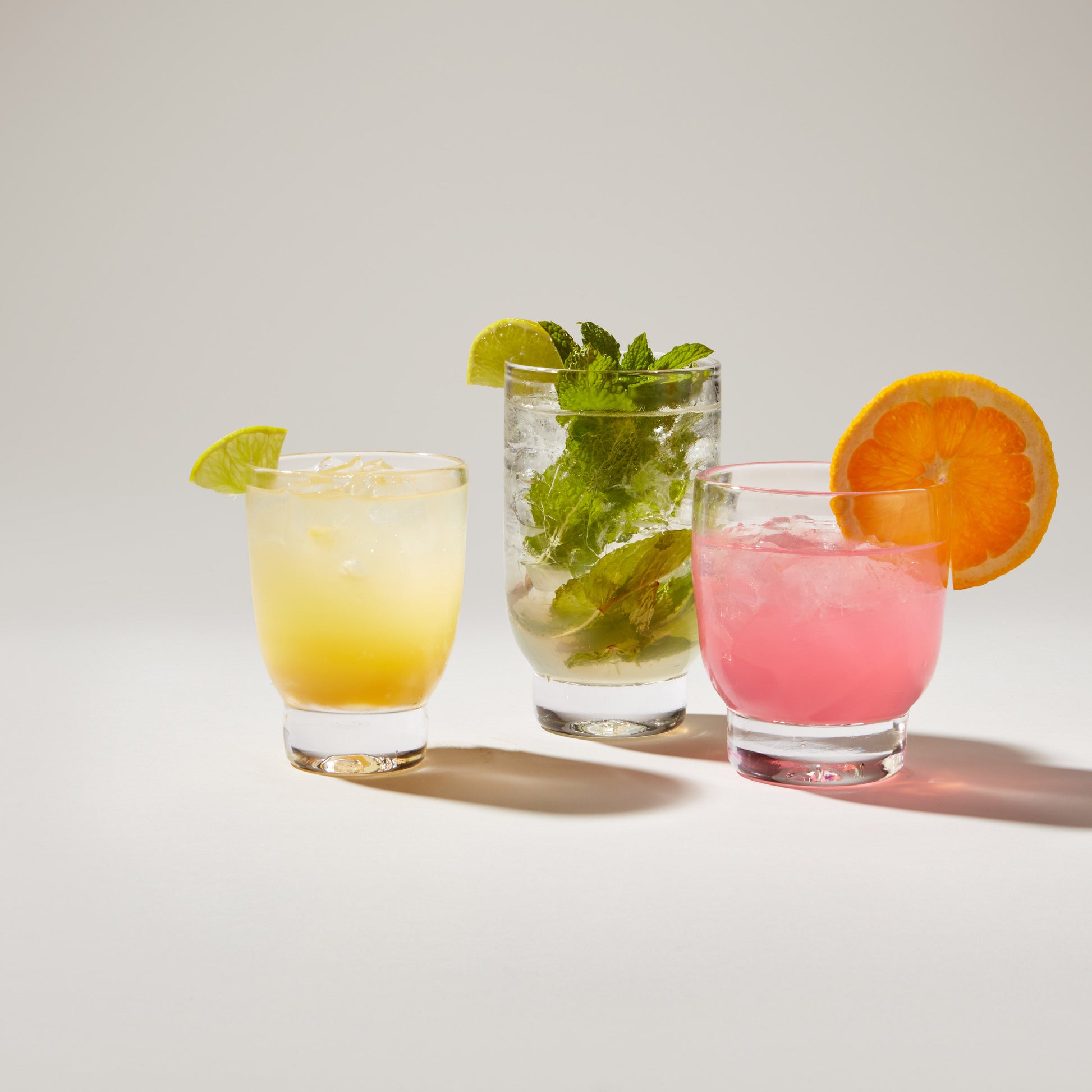 La nostra collezione di bicchieri iconici è perfetta per qualsiasi cosa, dai cocktail più elaborati ai cocktail analcolici, fino a un goccio di ouzo o succo d'arancia. Le proporzioni geometriche sono supportate da una base cilindrica robusta ed elegante. Disponibili in tre misure versatili.
