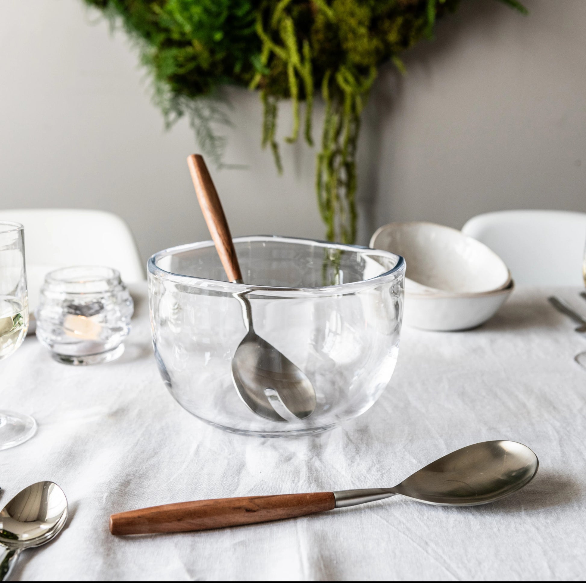 Ispirata allo spirito genuino di Burlington, questa ciotola in vetro perfettamente imperfetta ha un aspetto spensierato, ma con la sfumatura del design artigianale. Le sue linee fluide e la fluidità organica la rendono ideale come base per semplici centrotavola o come funzionale e bella insalatiera, un piacere da condividere.