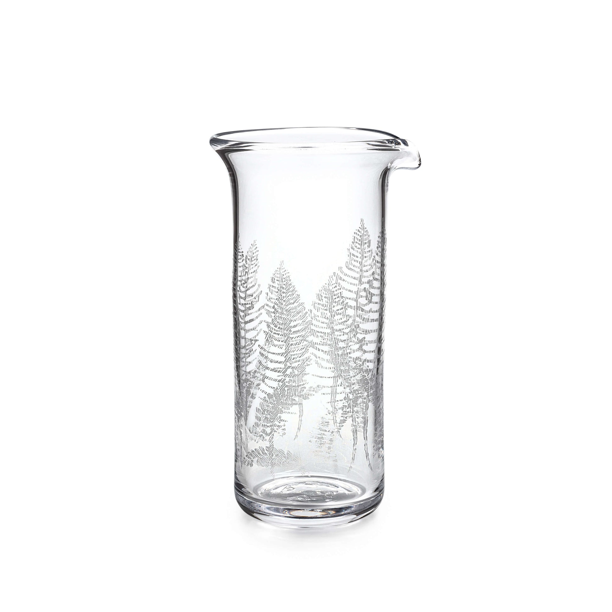 Ispirato ai pezzi in vetro inciso della collezione di vetri georgiani di Simon, il nostro motivo botanico a felce è un simbolo classico dell'arrivo della primavera. Riempi questa semplice brocca cilindrica in vetro con limonata fresca, acqua aromatizzata alle erbe o con fiori e felci per un vaso ispirato alla natura.