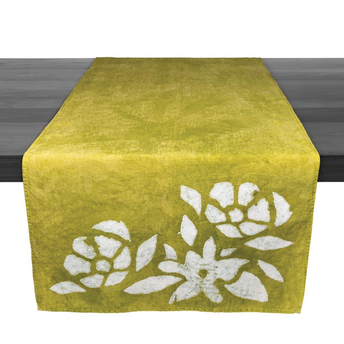 Runner in lino floreale verde -...
