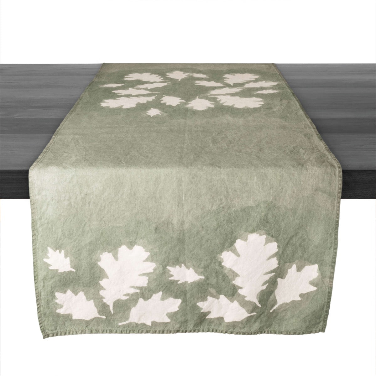 Runner in lino con foglie di quercia e...