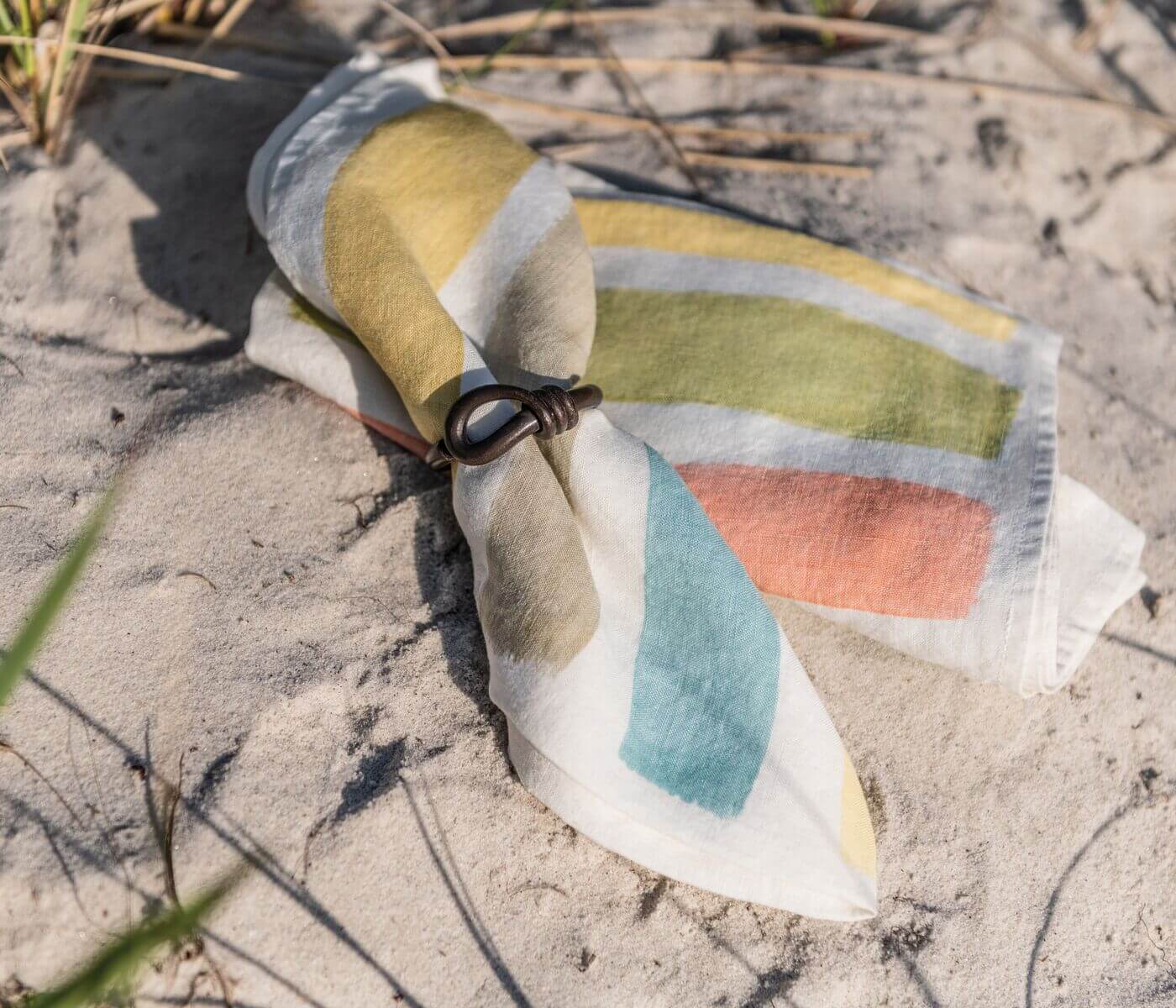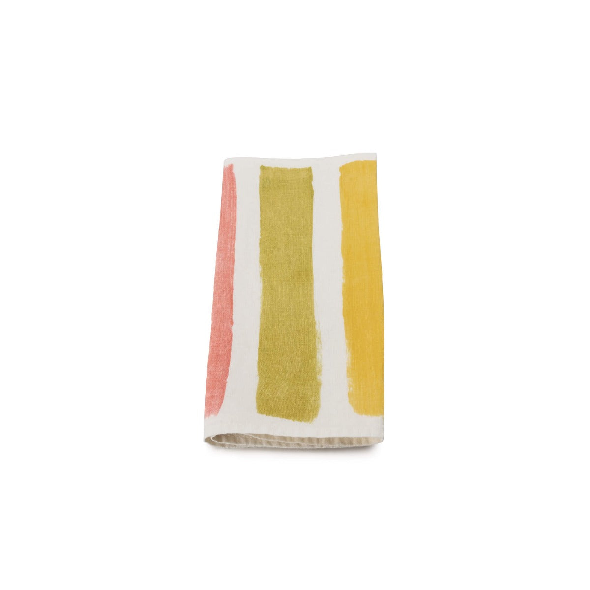 Dal 1920, questa azienda a conduzione familiare produce artigianalmente biancheria elegante e rispettosa dell'ambiente, sulle colline più settentrionali d'Italia. Utilizzando un esclusivo processo di vaporizzazione a energia solare, al lino biologico più pregiato vengono applicate tinte naturali dai colori vivaci. Questi tovaglioli dipinti a mano presentano audaci righe dai toni primaverili.