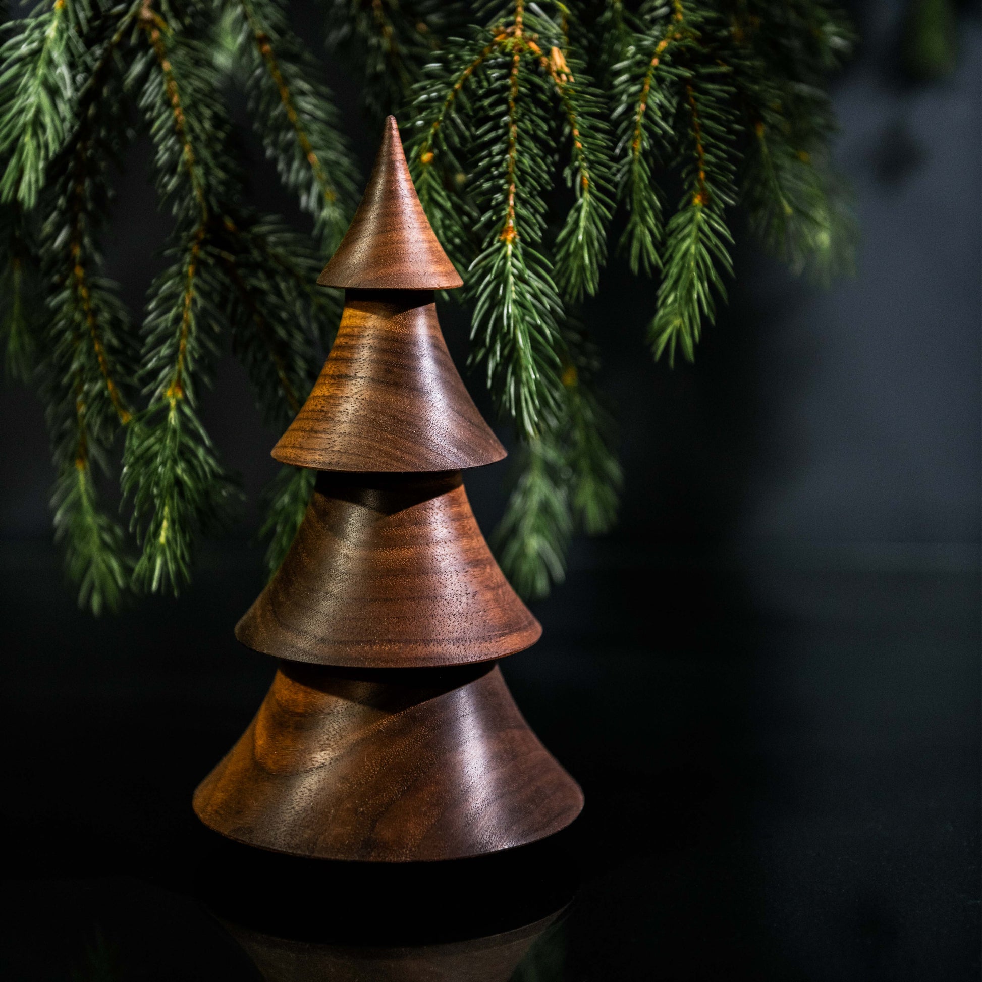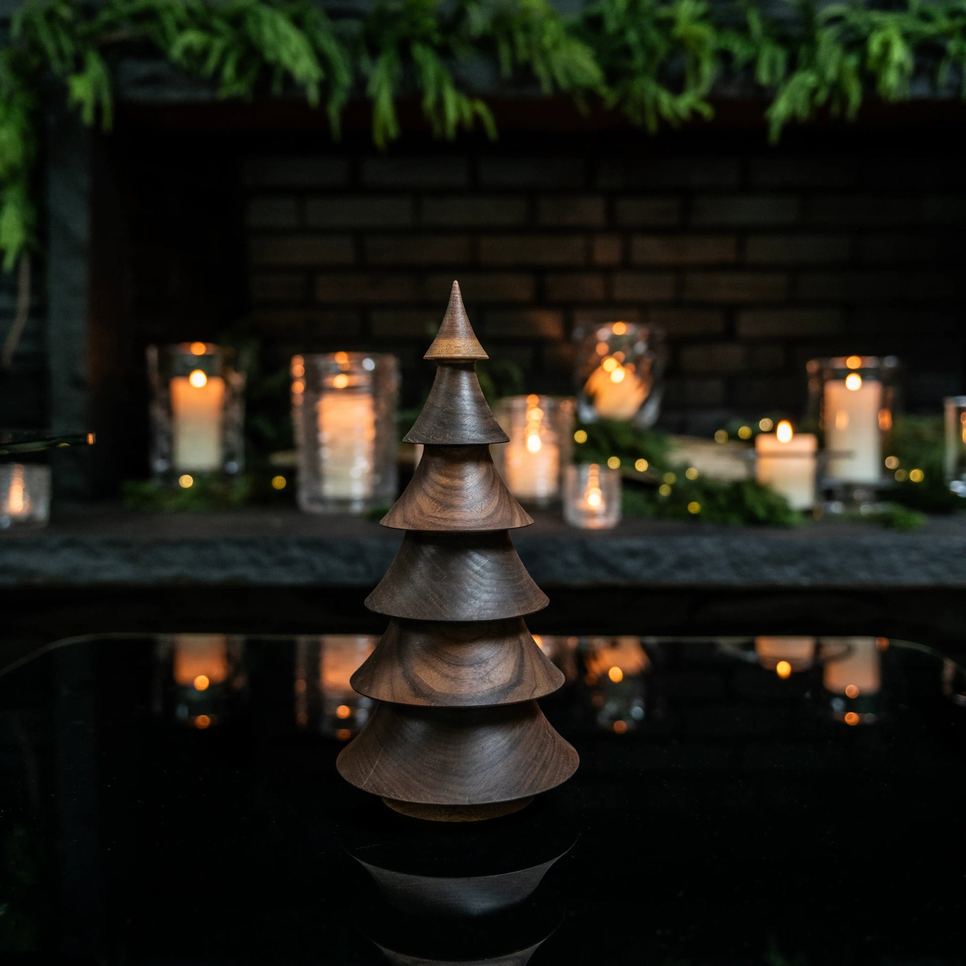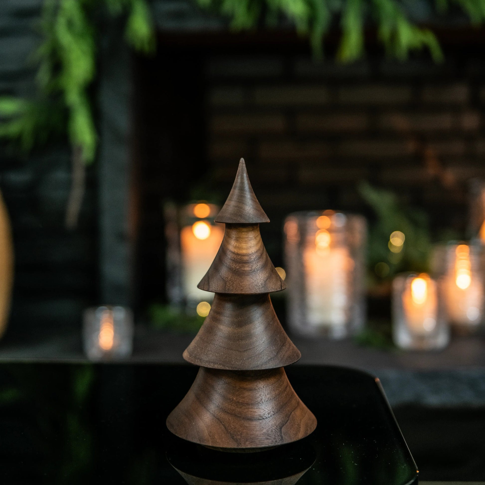 Frutto di una splendida collaborazione padre-figlio, gli alberi sempreverdi Andrew's Wood sono un'estensione e un complemento perfetto per gli iconici alberi in vetro e ceramica di Simon. Ogni albero sempreverde in legno duro sostenibile è tornito a mano, proprio qui a Hartland, e rifinito con l'olio per legno di noce brevettato da Andrew, per una lucentezza delicata che esalta le sfumature delle venature del legno lungo le creste. I legni di ciliegio e noce si sposano bene e sono disponibili in diverse altezze per aggiungere un calore completamente nuovo alla tua foresta.