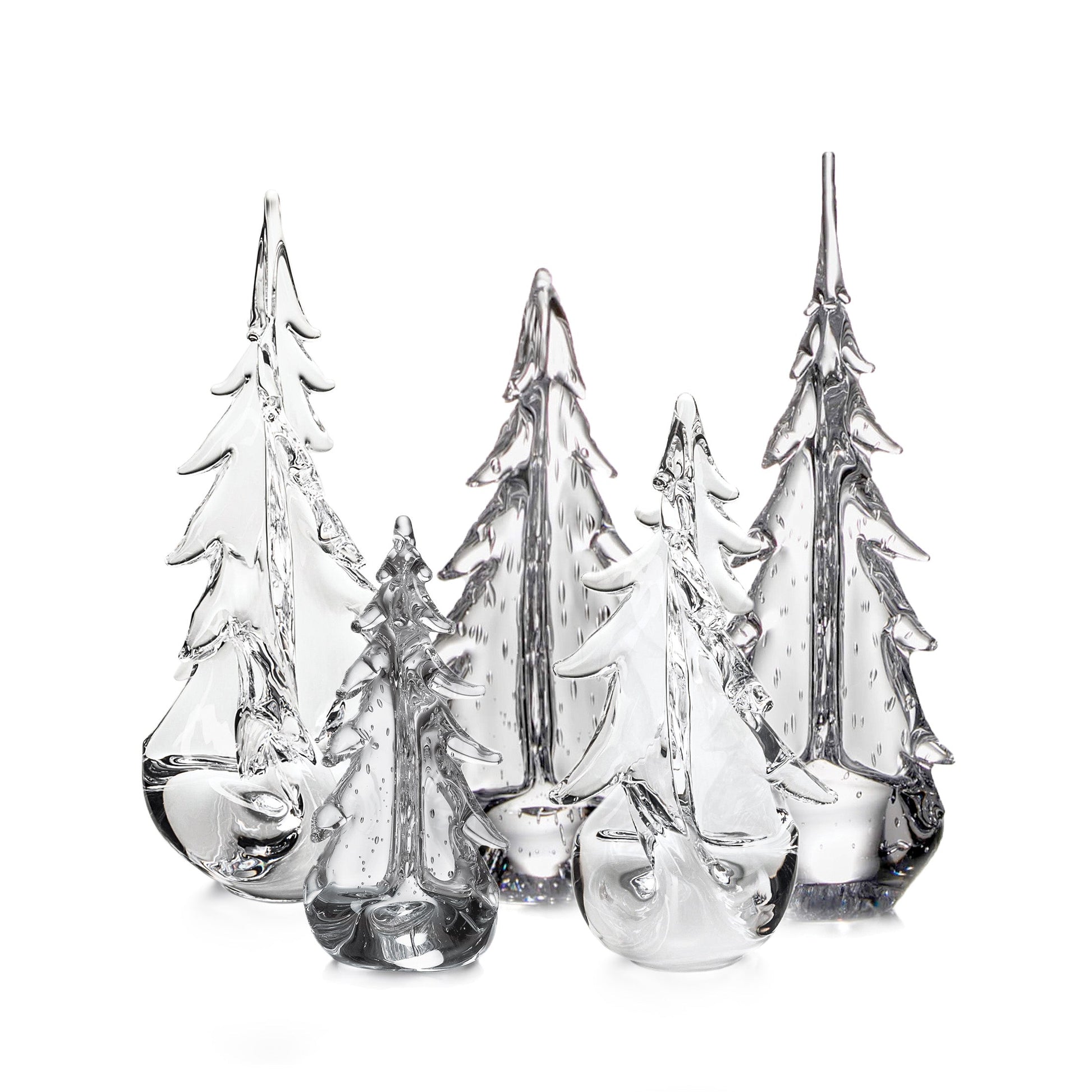 Una rivisitazione moderna di un design classico, questa foresta presenta una selezione di Evergreen fatti a mano che mettono in mostra il divertimento dell'arte della soffiatura del vetro. Dalle inclusioni mirate dei nostri Evergreen Bubble ai Twist Evergreen che si inclinano a destra o a sinistra a seconda del soffiatore, questi design inaspettati aggiungono un tocco giocoso e brillante alla tua esposizione ispirata alla natura.