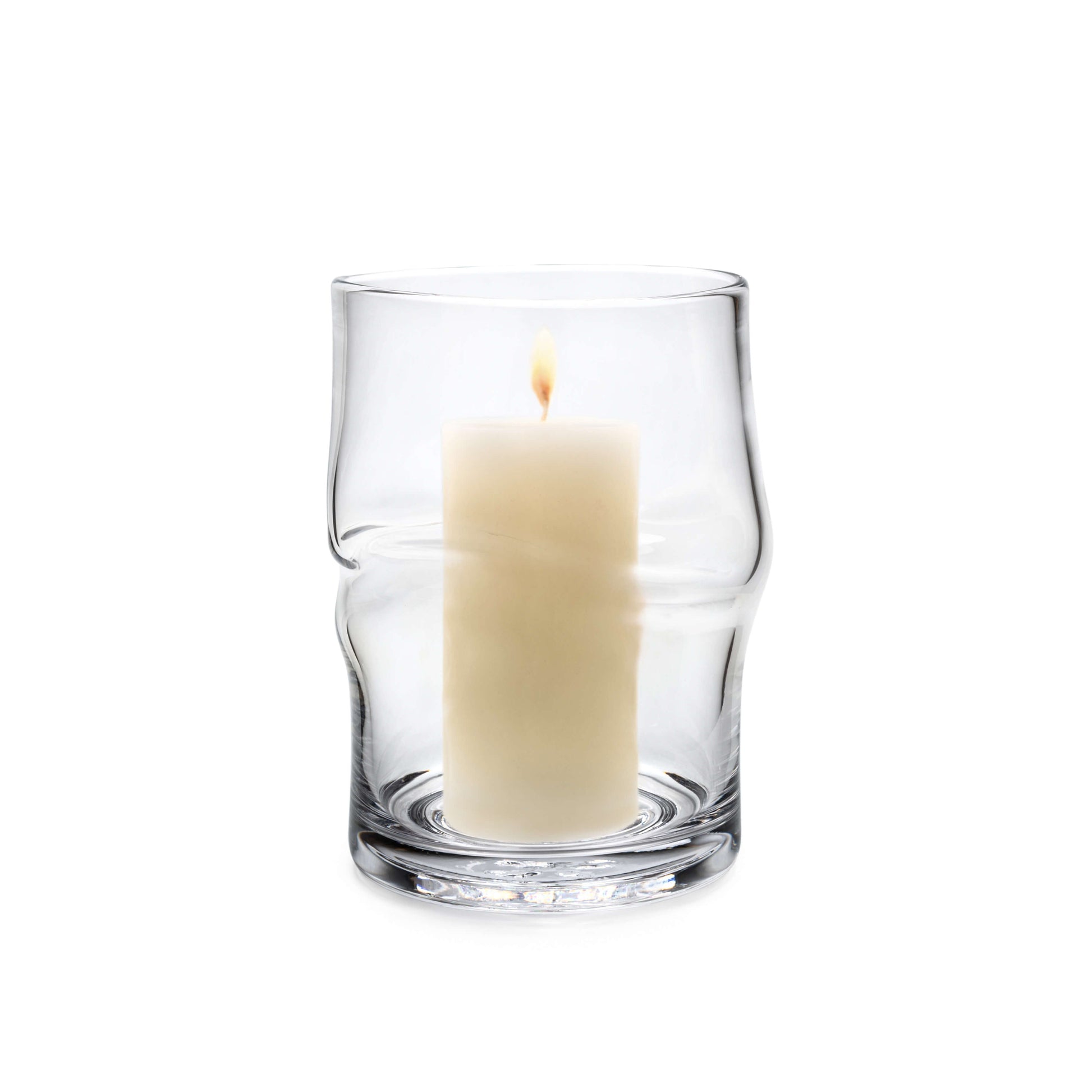 Abbiamo dato una nuova svolta alle proporzioni equilibrate della nostra semplice silhouette cilindrica Ascutney. Ogni pezzo sembra un momento del processo di soffiatura del vetro colto nel tempo. Il modo perfetto per mettere in mostra la sua unicità è il modo in cui la luce si rifrange dall'interno. Funge anche da vaso di grande impatto.