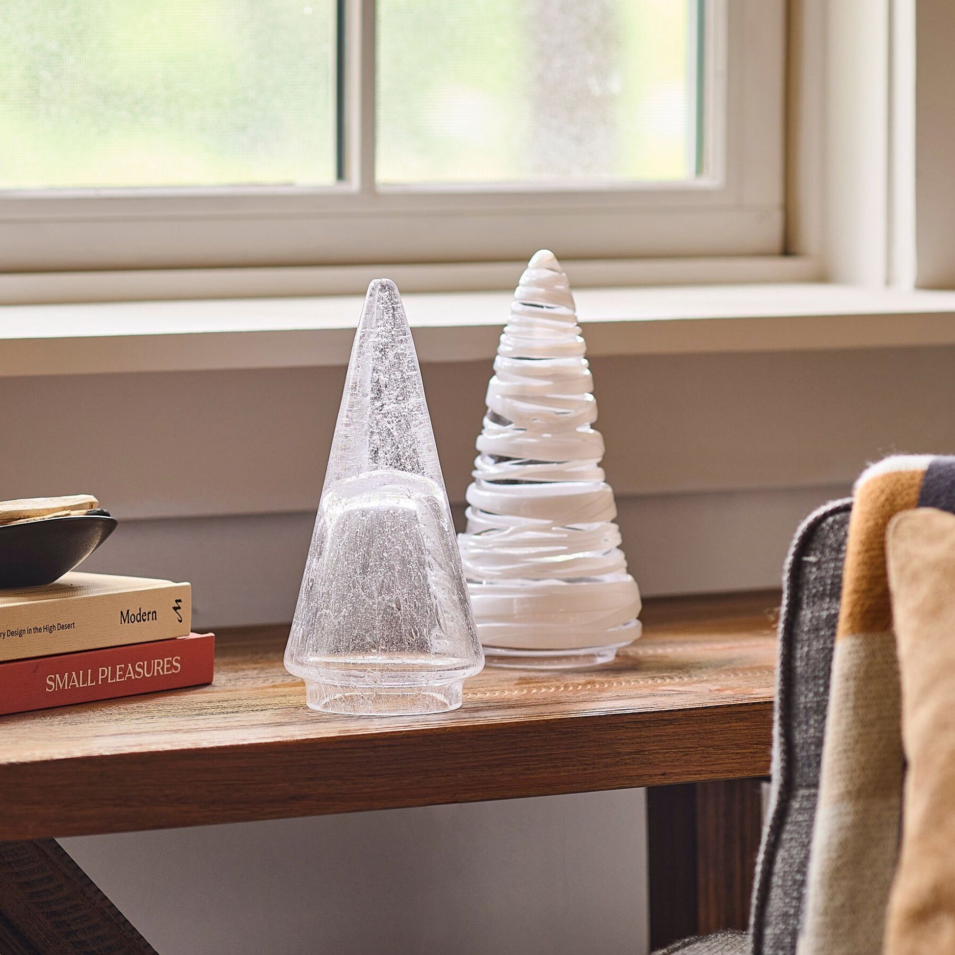 Il Vela Conical Tree cattura la quiete del ghiaccio nel vetro. Una costellazione di bollicine fini brilla lungo la sua silhouette conica, riflettendo la bellezza dei cieli invernali stellati. Elegante e moderno, offre un sorprendente contrasto con le forme più classiche.